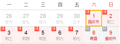 由于假期调整的原因,10月8日(周六)、10月9日(周日)正常上班!