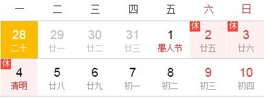 我公司根据国家有关规定和公司内部制度,决定2016年清明节放假3天,自2016年4月2日(周六)至4月4日(周一),4月5日起(周二)正式上班。
