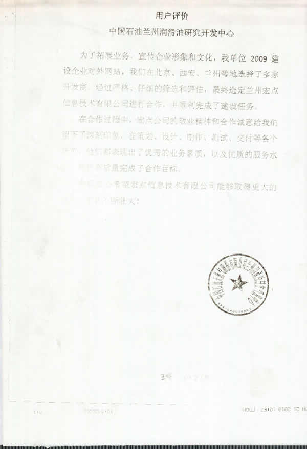 为了拓展业务,宣传企业形象和文化,我单位2009建设企业对外网站,我们在北京,西安,兰州等地选择了多家开发商,经过严格、仔细的筛选和评估,最终选定兰州宏点信息技术有限责任公司进行合作,并顺利完成了建设任务。
