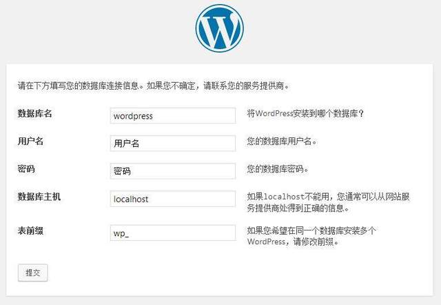 表前缀:数据库中建立的表的前缀名,默认值是 wp_ ,您可以修改为其他前缀名。